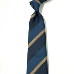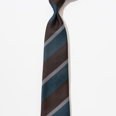 ヴィンテージのようなマッドな質感が特徴的なストライプタイ。落ち着いたカラーリングのストライプの配色でさまざまなスーツやシャツに合わせやすい1本です。こちらのネクタイはECOPET® (エコペット)という糸を使用しており、不要なペットボトルや衣料品や繊維くずより再生したサスティナブルな糸です。この糸を用いて京都伝統の西陣織で生地を織り上げ、現代のビジネススタイルに合わせて自宅で洗えるウォッシャブル仕様にした伝統と革新性が融合したサスティナブルなネクタイです。