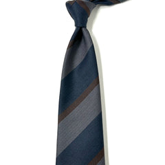 ヴィンテージのようなマッドな質感が特徴的なストライプタイ。落ち着いたカラーリングのストライプの配色でさまざまなスーツやシャツに合わせやすい1本です。こちらのネクタイはECOPET® (エコペット)という糸を使用しており、不要なペットボトルや衣料品や繊維くずより再生したサスティナブルな糸です。この糸を用いて京都伝統の西陣織で生地を織り上げ、現代のビジネススタイルに合わせて自宅で洗えるウォッシャブル仕様にした伝統と革新性が融合したサスティナブルなネクタイです。