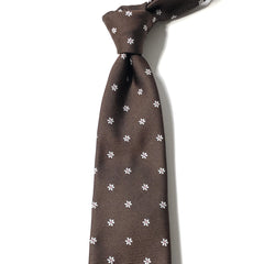 小ぶりな花柄が目を惹くネクタイです。控えめな花柄でVゾーンにも違和感なく馴染み、ちょっとした個性を表現してくれます。このネクタイはECOPET® (エコペット)という糸を使用しており、不要なペットボトルや衣料品や繊維くずより再生したサスティナブルな糸です。この糸を用いて京都伝統の西陣織で生地を織り上げ、現代のビジネススタイルに合わせて自宅で洗えるウォッシャブル仕様にした伝統と革新性が融合したサスティナブルなネクタイです。