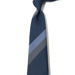 ワイドピッチヘリンボンストライプタイ。ストライプのワイドピッチと変化のあるヘリンボン組織が目新しいネクタイ。マンネリした胸元に華を添えてくれます。このネクタイはECOPET® (エコペット)という糸を使用しており、不要なペットボトルや衣料品や繊維くずより再生したサスティナブルな糸です。この糸を用いて京都伝統の西陣織で生地を織り上げ、現代のビジネススタイルに合わせて自宅で洗えるウォッシャブル仕様にした伝統と革新性が融合したサスティナブルなネクタイです。