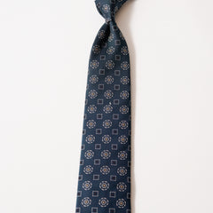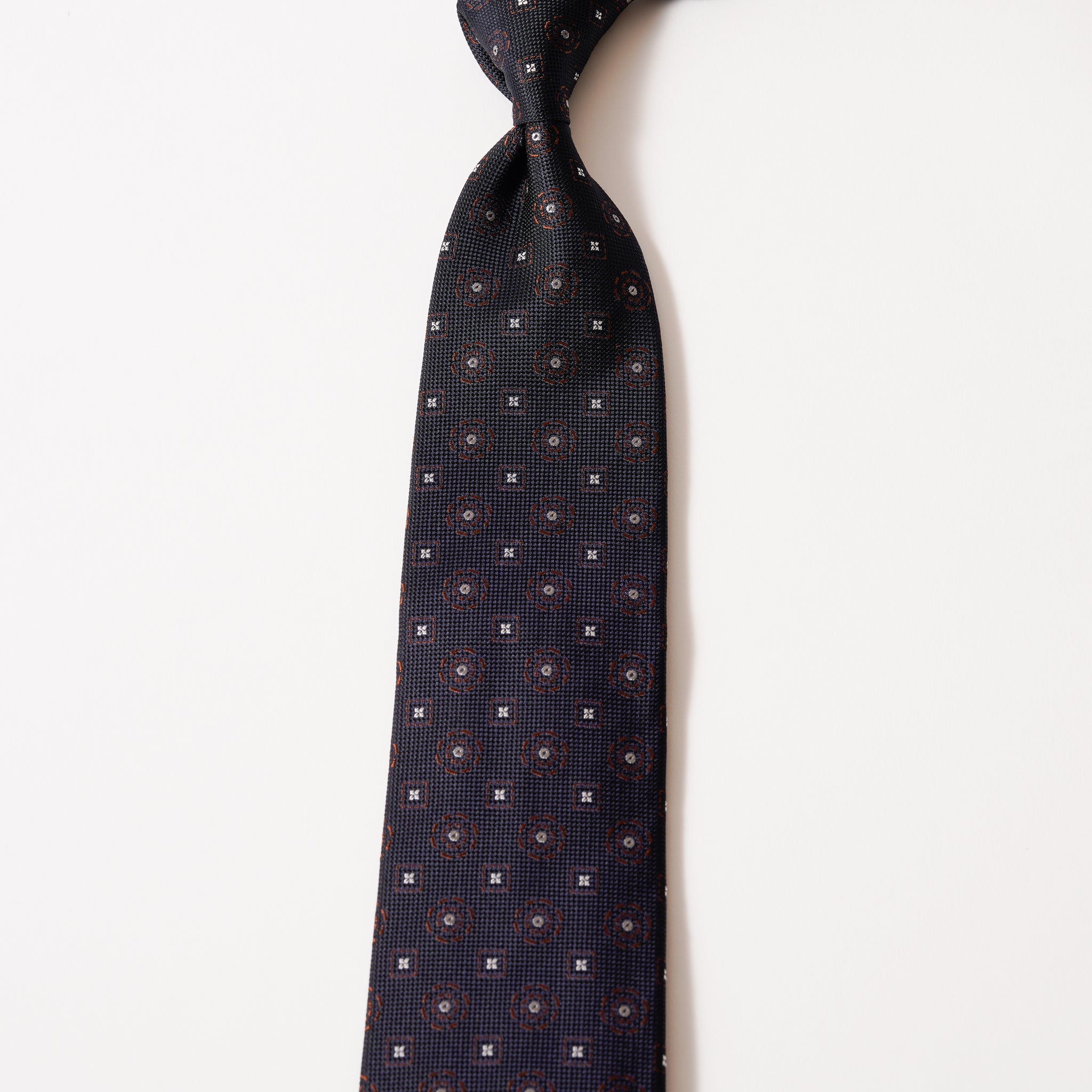 クラシックな雰囲気を醸し出す小紋柄タイ。ブラウンをベースにテラコッタとホワイトを効かせた配色が、落ち着きの中にも温かみを添えます。ネイビーやグレーのスーツに合わせれば、Vゾーンにクラシックで洒落感のあるアクセントを与えてくれる一本です。生地は京都・丹後の旧式レピア織機で丁寧に織り上げ、ふっくらとした質感に。熟練の職人による確かな縫製で仕立てられた、日本製の高品質なネクタイです。