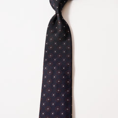 クラシックな雰囲気を醸し出す小紋柄タイ。深みのあるペトロールにホワイトとブラウンを組み合わせた配色が、洗練された落ち着きを演出します。グレーやブラウン系のスーツに合わせれば、上品でモダンな印象に仕上がる一本です。生地は京都・丹後の旧式レピア織機で丁寧に織り上げ、ふっくらとした質感に。熟練の職人による確かな縫製で仕立てられた、日本製の高品質なネクタイです。