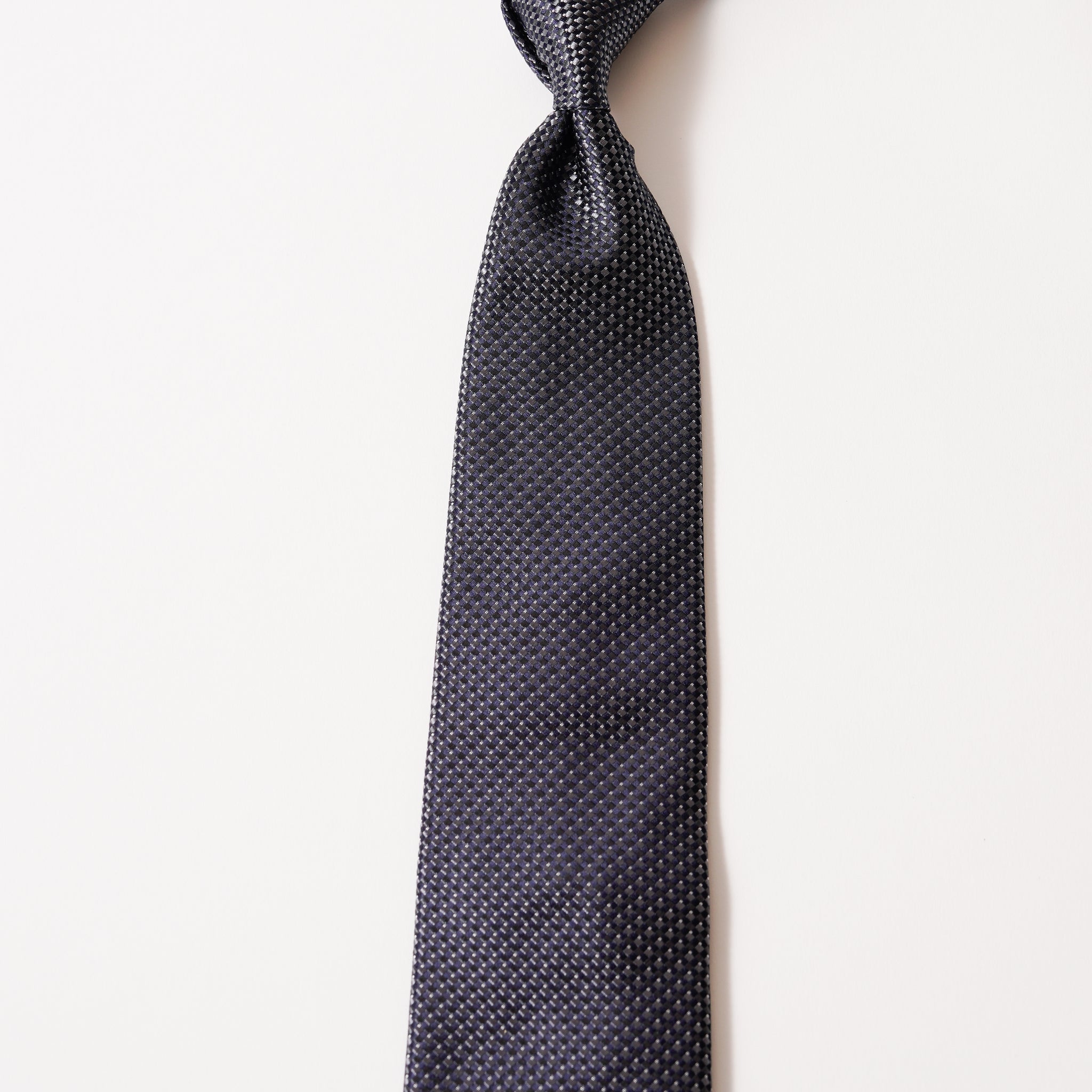 【NEW COLOR】洗練されたグレーに、光の角度で紺がにじみ出て、シンプルな装いに奥行きを与えるマイクロタイ。ネイビースーツに合わせれば清潔感と知的さを。チャコールやグレースーツに合わせれば都会的でスタイリッシュな印象を演出します。生地は京都・丹後の旧式レピア織機で丁寧に織り上げ、ふっくらとした質感に。熟練の職人による確かな縫製で仕立てられた、日本製の高品質なネクタイです。